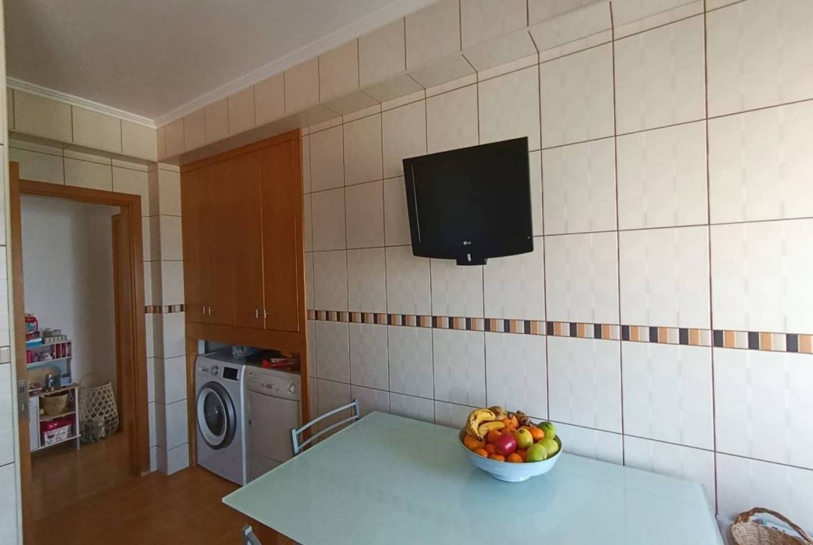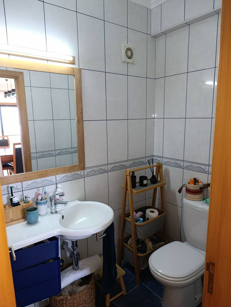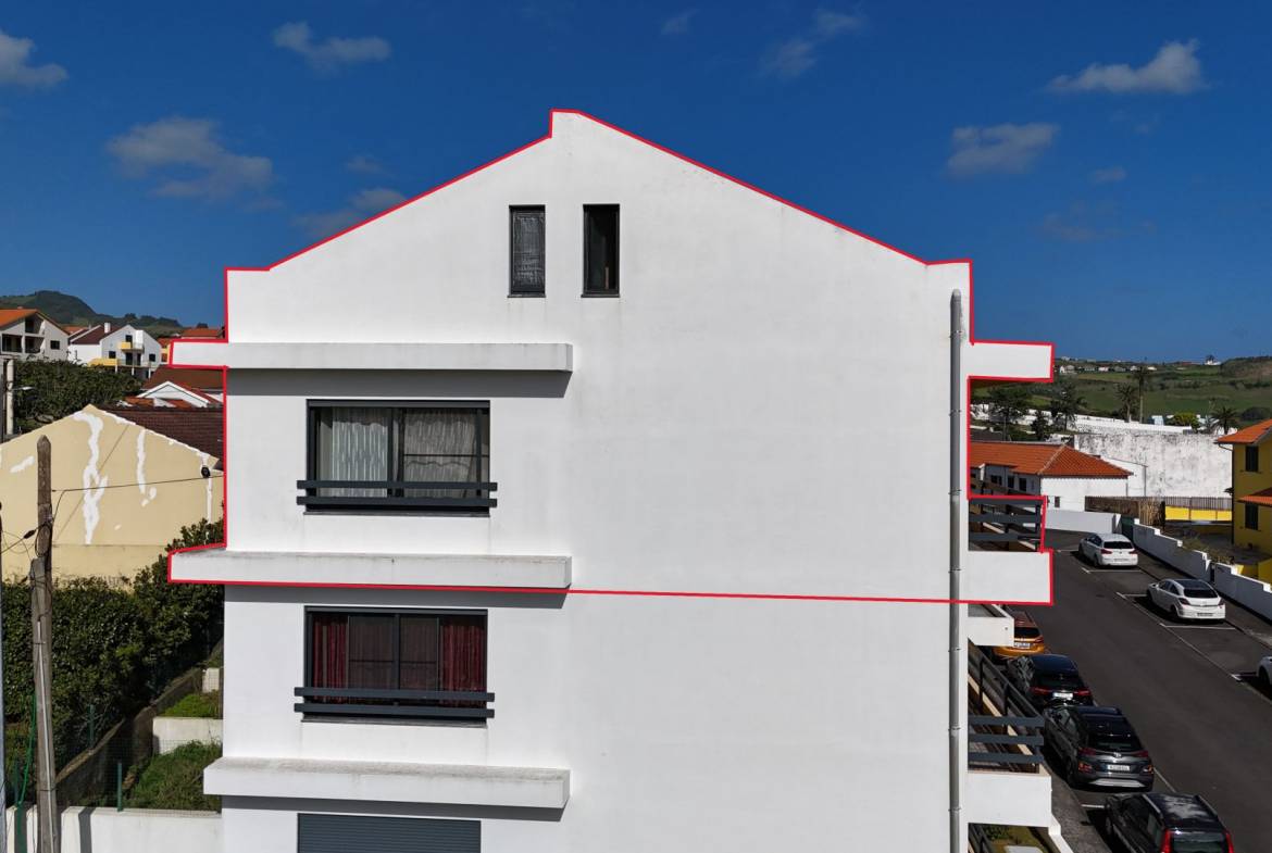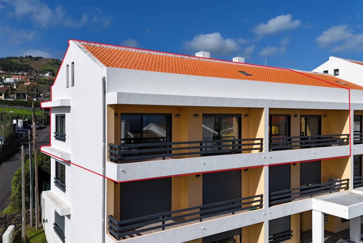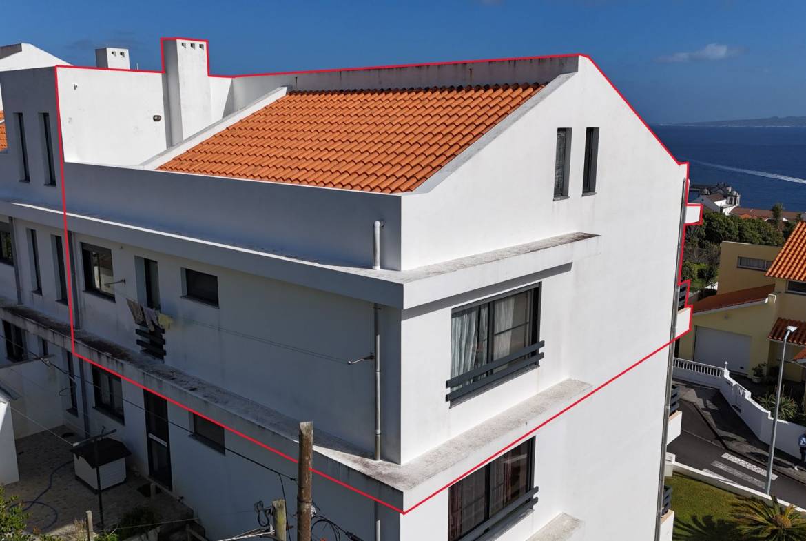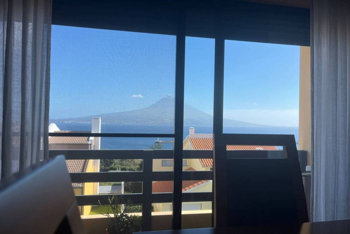The apartment has three good sized bedrooms (one currently being used as an office), a large living / dining area, 2 bathrooms, kitchen and a washing space. It’s very well maintained in an extremely good location. In total there’s a 177.07m2 private area, which makes for a sizable and very comfortable home in Horta. It sits on the top floor of a modern apartment bloc offering great views on Pico and São Jorge islands and to the surrounding areas of the city. It also has doble glazed windows to both sides of the building, insuring that there’s always plenty of natural light, saving you energy on heating and electricity. It’s fully furnished and move in ready! The building is modernly built and everything is in impeccable condition. There’s an owners association that helps guarantee that common spaces are well kept and all the maintenance is done.