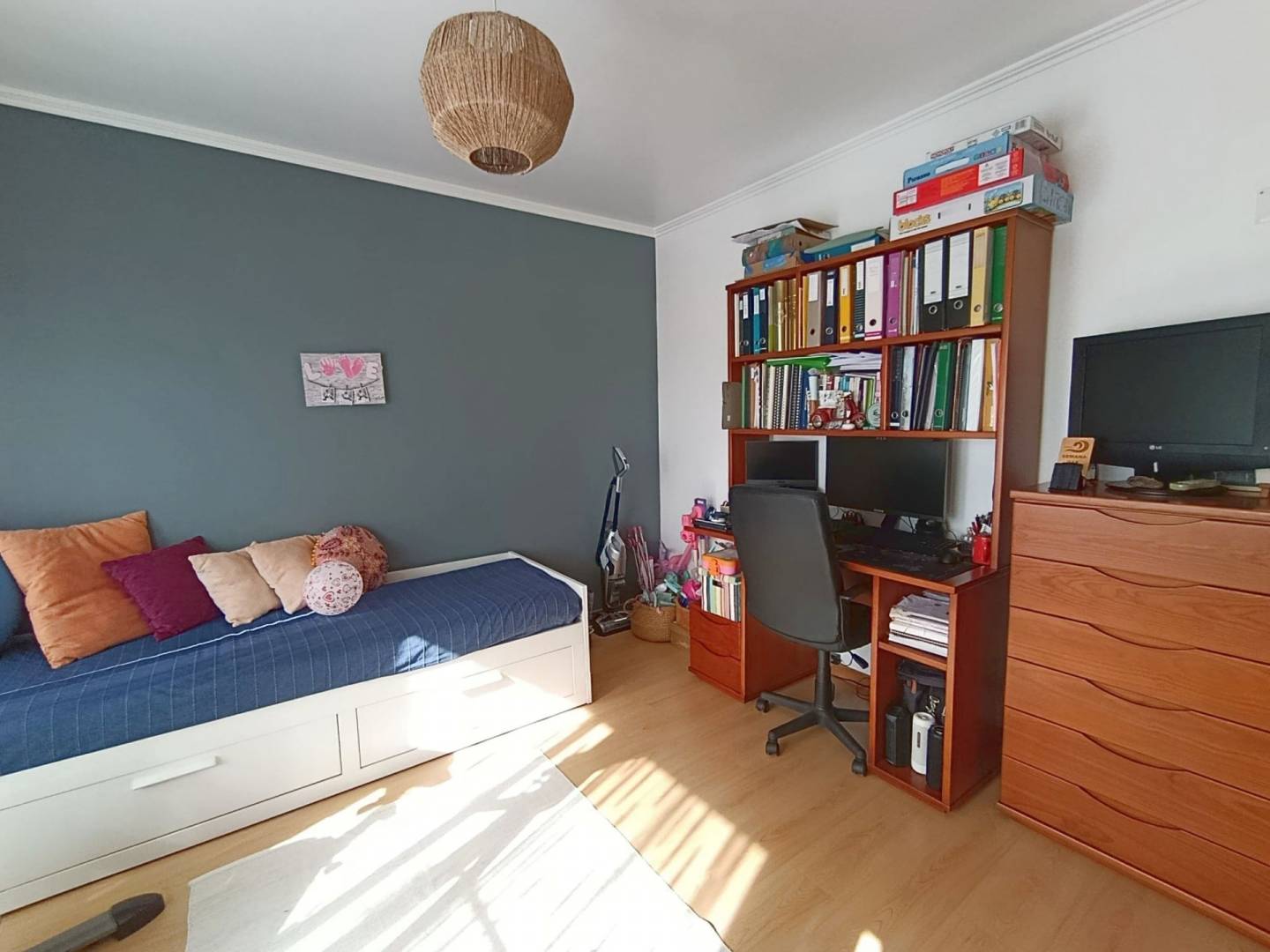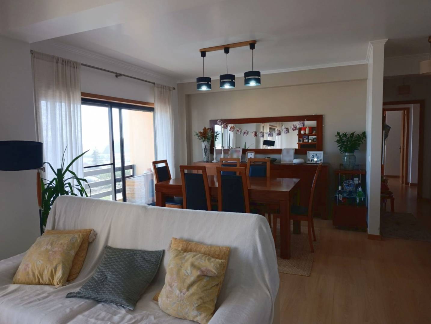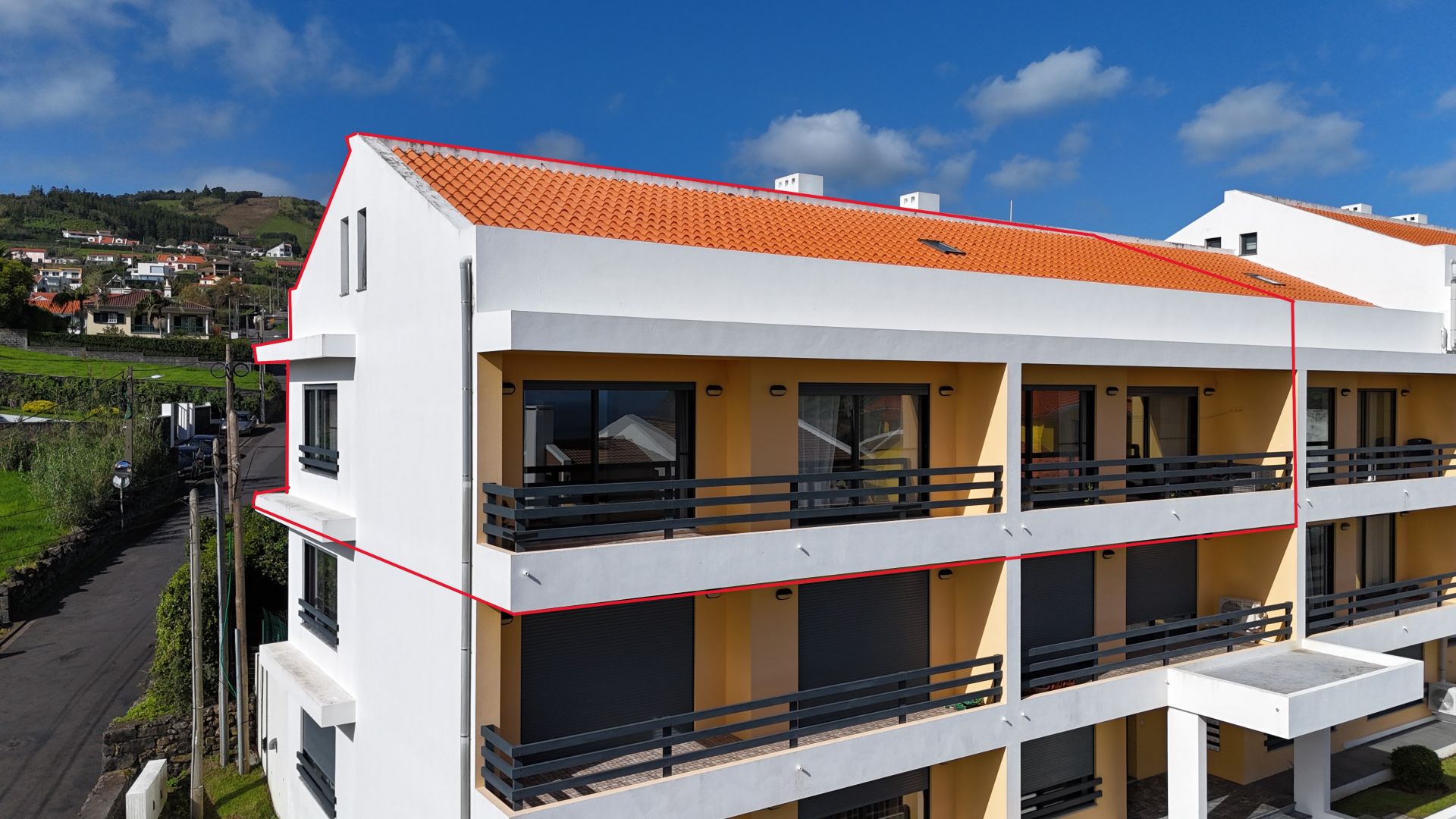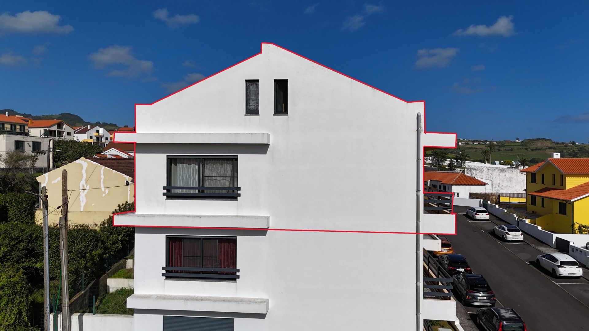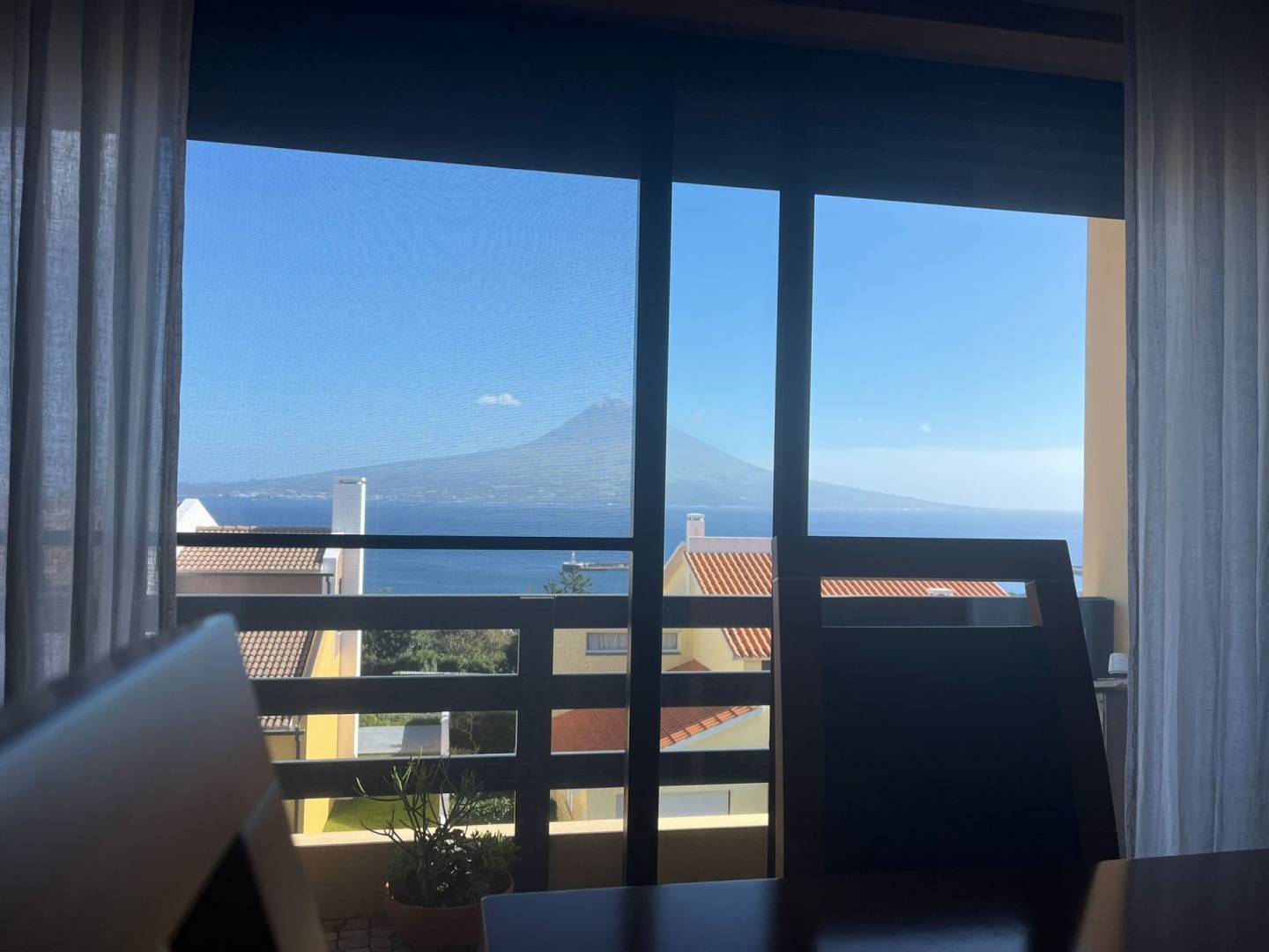 The apartment has three good sized bedrooms (one currently being used as an office), a large living / dining area, 2 bathrooms, kitchen and a washing space. It’s very well maintained in an extremely good location. In total there’s a 177.07m2 private area, which makes for a sizable and very comfortable home in Horta. It sits on the top floor of a modern apartment bloc offering great views on Pico and São Jorge islands and to the surrounding areas of the city. It also has doble glazed windows to both sides of the building, insuring that there’s always plenty of natural light, saving you energy on heating and electricity. It’s fully furnished and move in ready! The building is modernly built and everything is in impeccable condition. There’s an owners association that helps guarantee that common spaces are well kept and all the maintenance is done.
