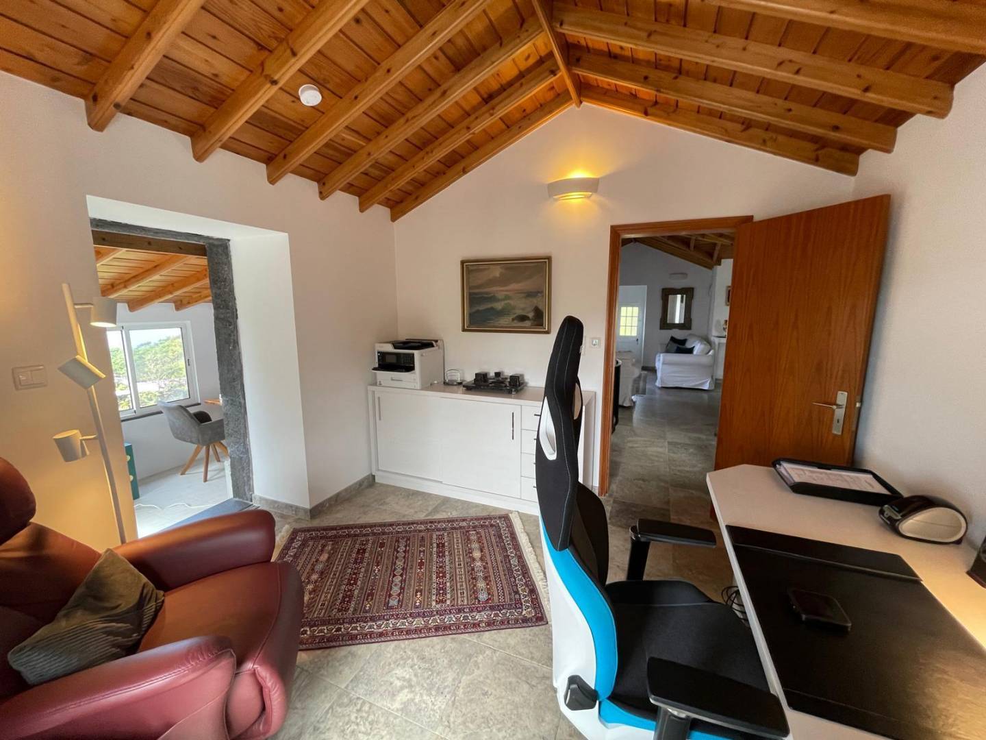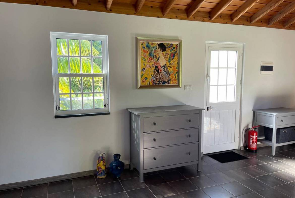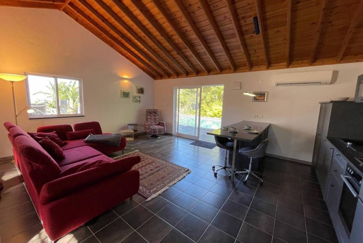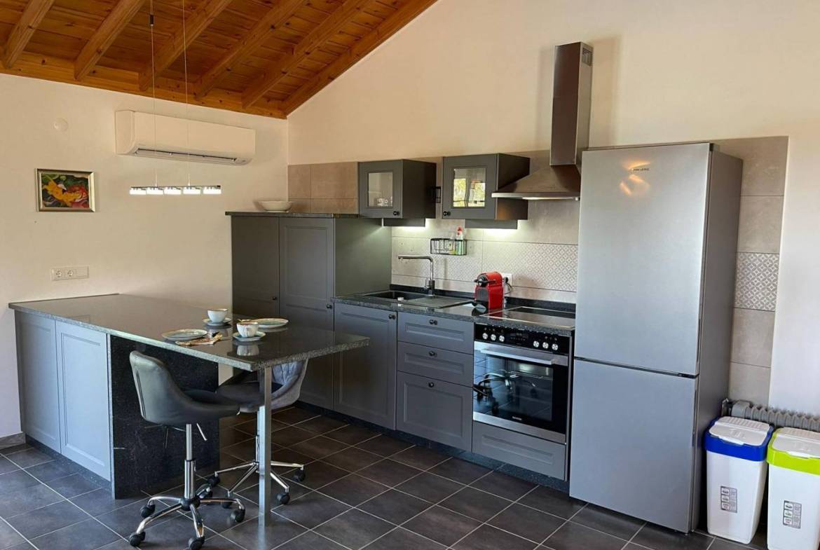 The Main Apartment: The heart of the property, this spacious unit includes a cozy bedroom and a modern bathroom. Designed for longer stays or a digital nomad lifestyle, it boasts a dedicated office space, a formal dining room for entertaining, a fully equipped kitchen, and a light-filled living area.