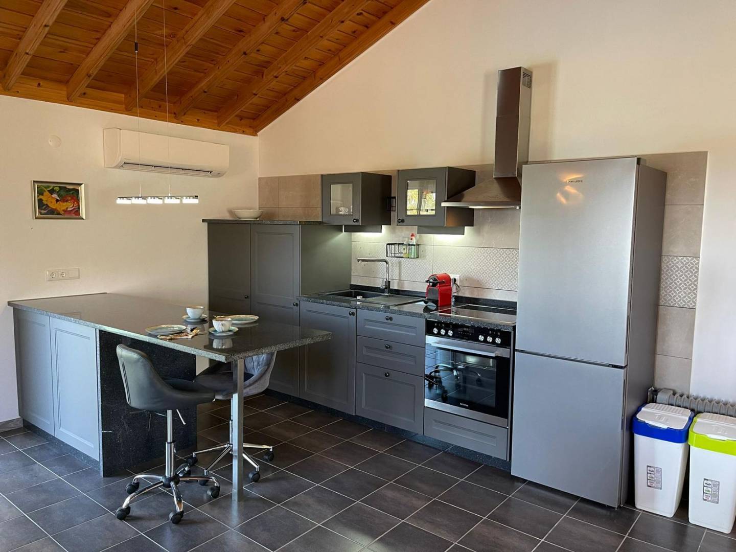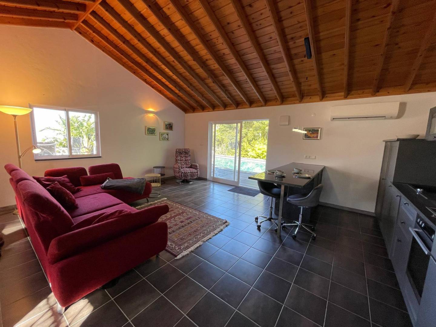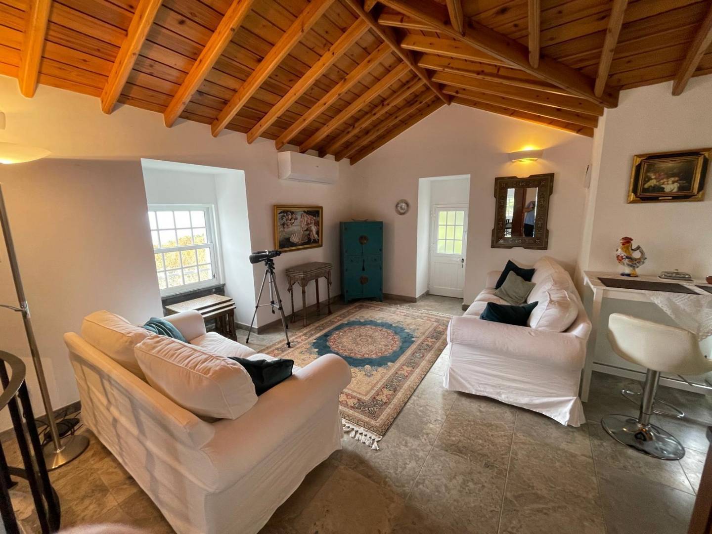 The Main Apartment: The heart of the property, this spacious unit includes a cozy bedroom and a modern bathroom. Designed for longer stays or a digital nomad lifestyle, it boasts a dedicated office space, a formal dining room for entertaining, a fully equipped kitchen, and a light-filled living area.