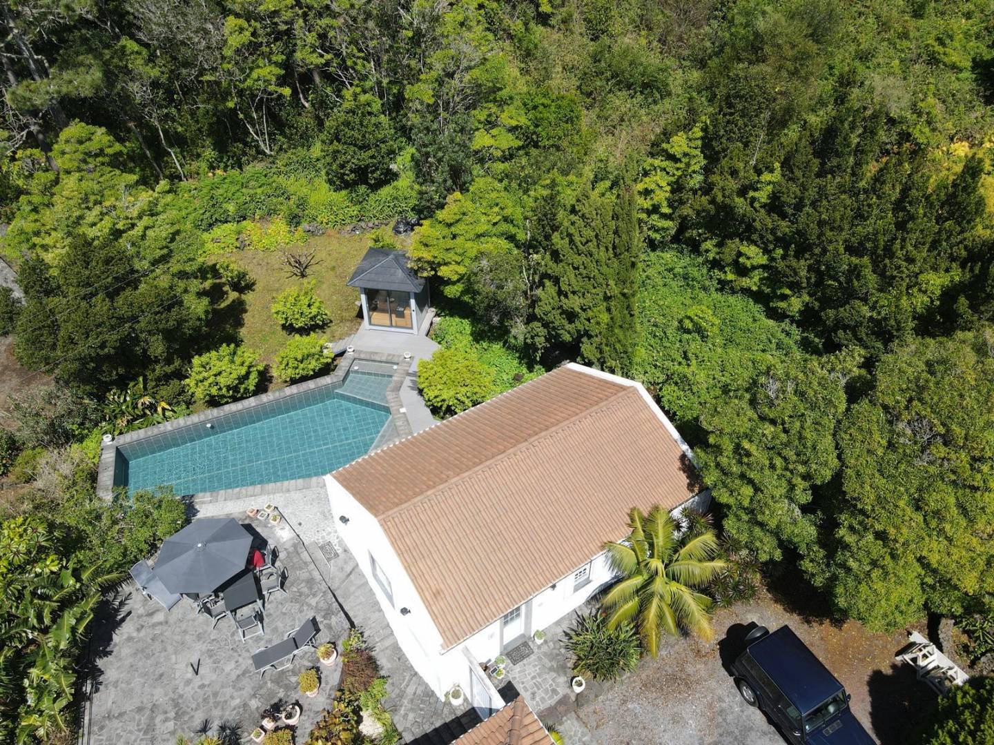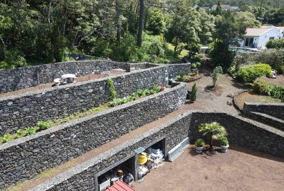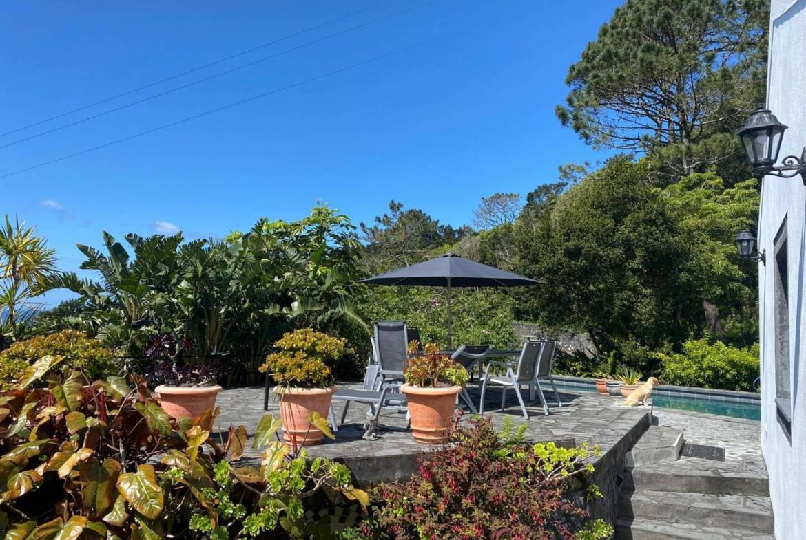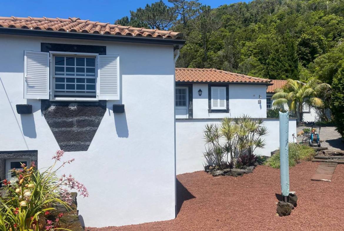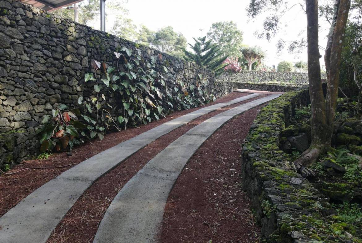 The exterior of the property is a masterclass in landscaping, utilizing the local volcanic “terra rossa” to create a striking contrast against the vibrant greenery.