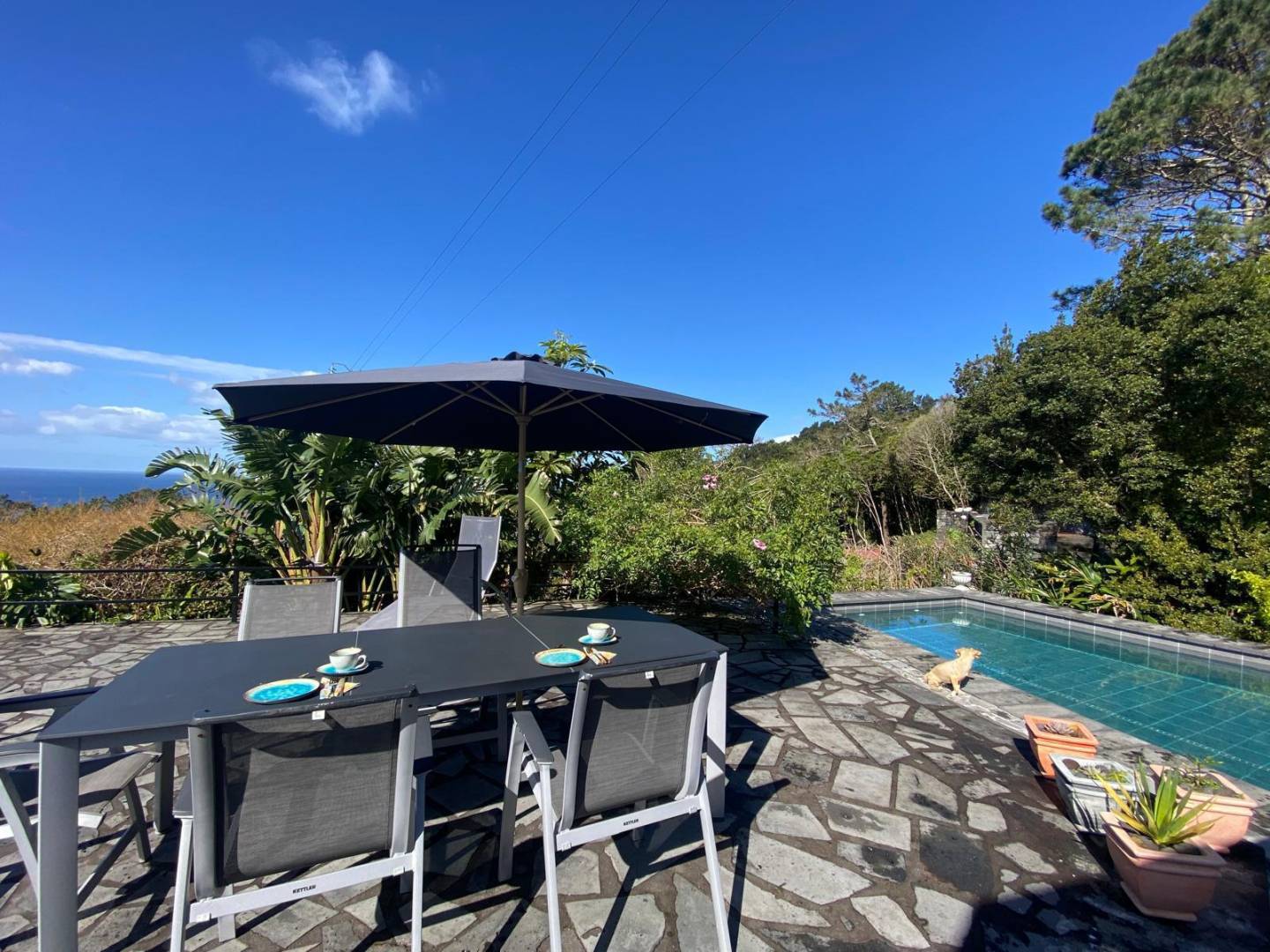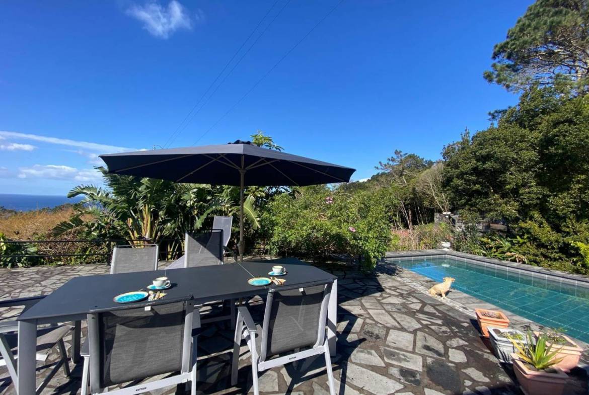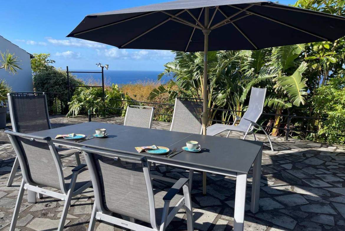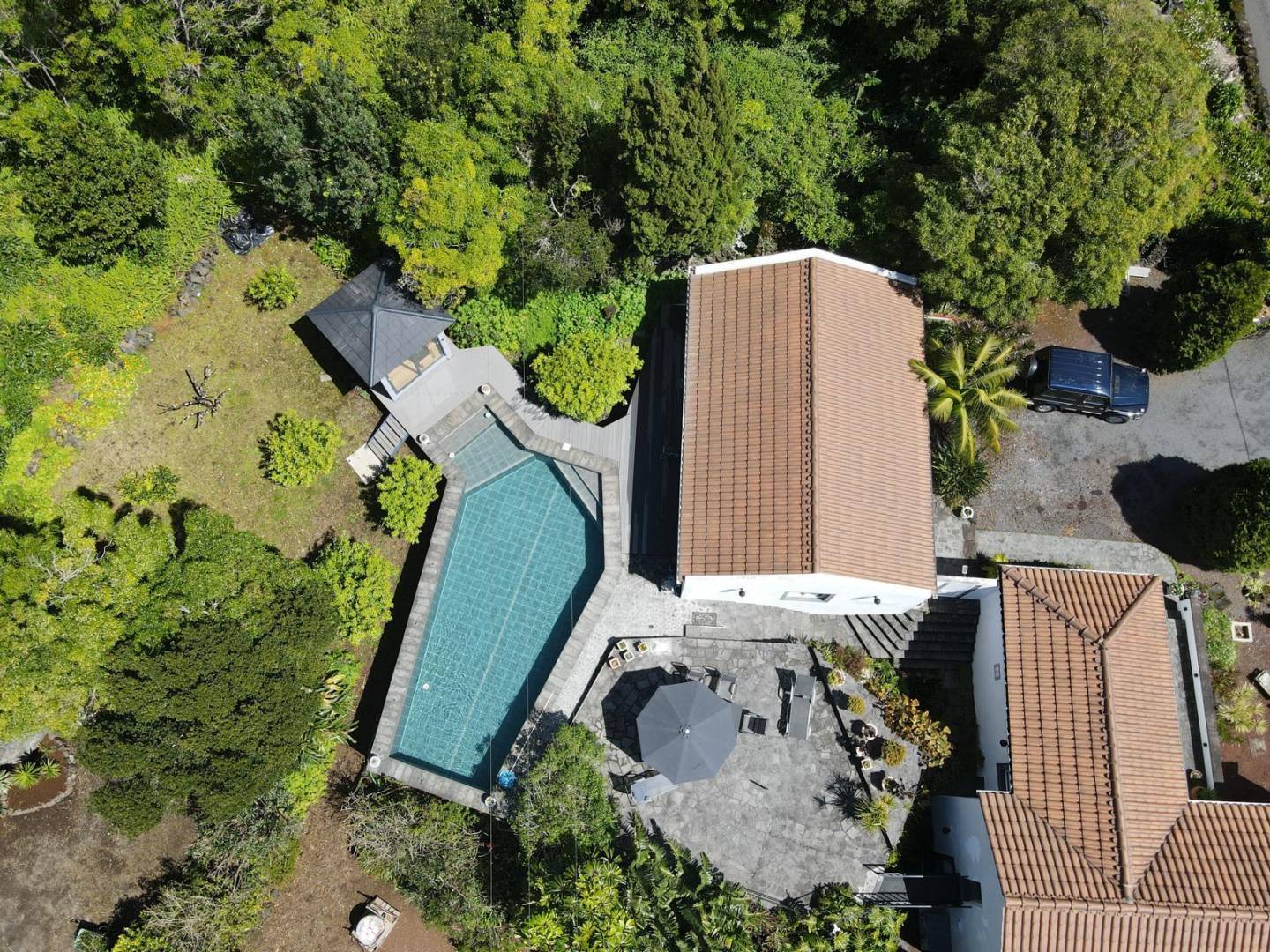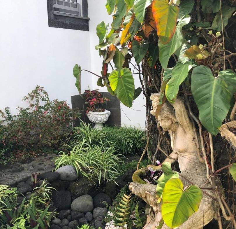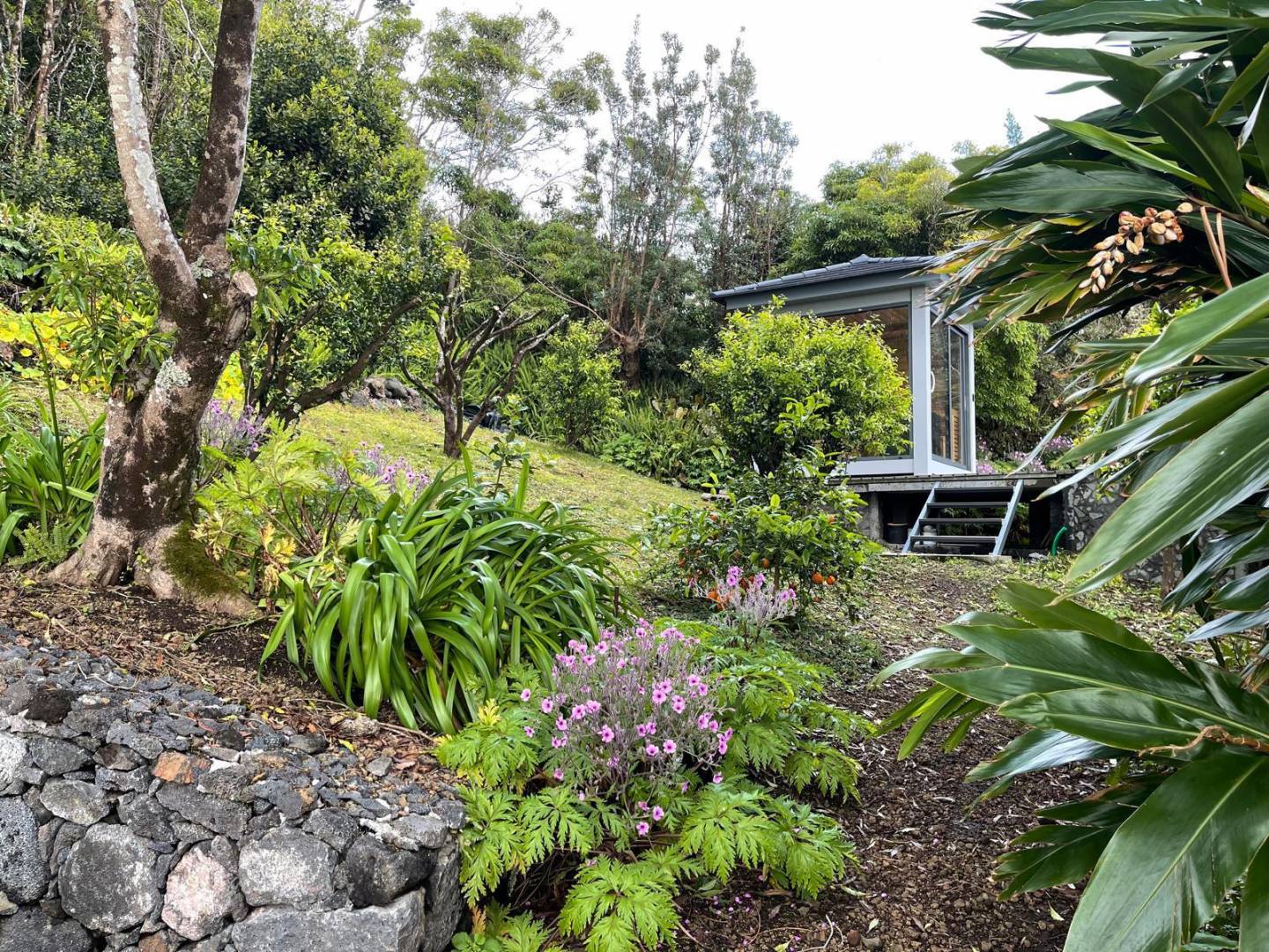 The exterior of the property is a masterclass in landscaping, utilizing the local volcanic “terra rossa” to create a striking contrast against the vibrant greenery.