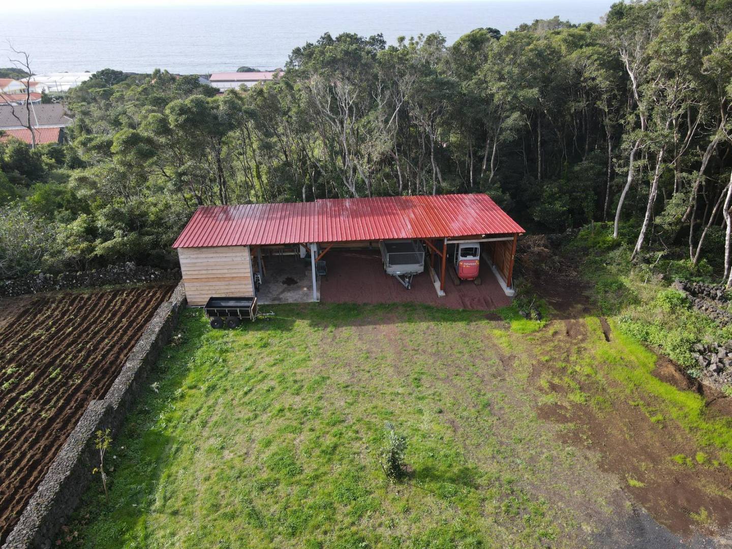 Versatility: Large outbuildings with red roofs provide ample space for storage, workshops, or further expansion of the touristic project.