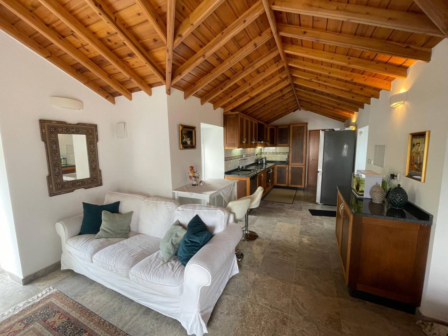 The Guest Apartment: A mirrored sanctuary of comfort, featuring its own private kitchen, living room, bedroom, and bathroom. This self-contained unit ensures complete autonomy for guests.